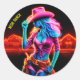 Adesivo Redondo Neon fantasiosa vaqueira no rancho brilhante