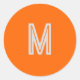 adesivo redondo clássico com um círculo de cor sólida cor laranja neon e uma fonte branca. Design simples e moderna por Alma personalizava-o com o seu monograma agora. _______________— Laranja, a cor do sol, é muitas vezes associada ao sinal de Leo. Você pode considerar isso ao escolher um presente.