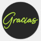 Adesivo Redondo Neon Verde limão Brilho Espanhol Obrigado