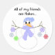 Uma bela cena de inverno com um boneco de neve com braços de galho segurando um monte de flocos de neve coloridos. O ditado pode ser mudado como desejado.