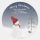 Boné vermelho em boneco de neve de Natal com estrela de ouro de Natal em flocos de neve. Saudações e informações pessoais podem ser editadas.