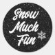Flocos de neve brancos com texto "muito divertido de neve" em preto. A cor de fundo pode ser alterada.
