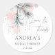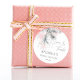 Etiquetas de presente de casamento de inverno com neve de amor, autocolantes de agradecimento, galhos de pinheiro nevados pastéis em rosa e cinza com guirlandas de cristal, autocolantes de agradecimento para casamento de inverno, fonte moderna casual