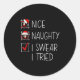 Adesivo Redondo Nice Naughty I Swear I Tried Christmas List Funny