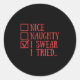 Adesivo Redondo Nice Naughty I Swear I Tried Funny Xmas