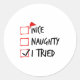 Adesivo Redondo Nice Naughty List I Tried Funny Christmas Santa Cl