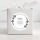 Nikkah Elegant Black & White Leaf Wreath Border Design. Personalize com seu nome, detalhes do evento e data. Vivid Dhikr ©? Você pode alterar o texto, a cor do texto, o estilo da fonte e a cor do plano de fundo usando a opção personalizar mais adiante. Apresentando uma bela imagem de borda botânica que pode ser facilmente alterada para qualquer cor. Perfeito para selar e rotular caixas de sobremesas, bolsas doces, presentes de casamento, favores e envelopes.