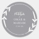 Nikkah Elegant Smoke Leaf Wreath Border Design. Personalize com seu nome, detalhes do evento e data. Vivid Dhikr ©? Você pode alterar o texto, a cor do texto, o estilo da fonte e a cor do plano de fundo usando a opção personalizar mais adiante. Apresentando uma bela imagem de borda botânica que pode ser facilmente alterada para qualquer cor. Perfeito para selar e rotular caixas de sobremesas, bolsas doces, presentes de casamento, favores e envelopes.