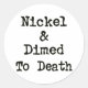 Nickel e Dimed to Death, um slogan sarcástico para comprar os consumidores comprando gás ou comida, viajando ou de férias. Mostre-lhes que você está farto de pagar taxas e despesas extras.