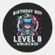 Adesivo Redondo Nível 8 Desbloqueado Aniversário De 8 Anos Engraça