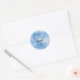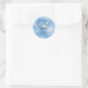 Elegante adesivo redondo de chá de noiva em aquarela azul com caligrafia e título "Ela está nas nuvens"