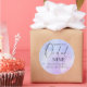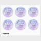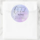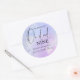 Elegante adesivo redondo clássico de caligrafia azul e rosa em aquarela Chá de Noiva com o título "A Noiva está na Nona Nuvem". Tema Nove Nuvens também disponível na minha coleção de produtos correspondentes.