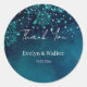 Esta design romântica foi inspirada por uma cerimônia romântica de inverno, realizada à noite, depois que o sol se pôs e as estrelas acendem o céu. Este belo marinho da meia-noite e o adesivo azul real "Obrigado" apresenta vários flocos de neve prateados e turquesa juntamente com seus nomes e data em fontes serif. Personalize as etiquetas com os seus nomes e a data. Mude o texto para qualquer evento: chá de panela, janta de ensaio, chá de fraldas e muito mais!