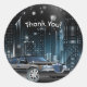 Adesivo Redondo Noite de Limusine Azul e Preta na Cidade de Aniver