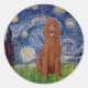 Adesivo Redondo Noite Estrelada - Poodle Padrão Vermelho Escuro #1