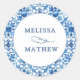 Adesivo Redondo Noiva de padrão azul e branco moderno e casamento
