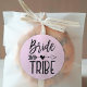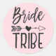 Um adesivo rosa personalizado para sua tribo de noivas de confiança. Ele apresenta uma aparência clássica com tema preto e rosa com as palavras tribo da noiva escritas em uma fonte de estilo manuscrito. Entre ambas as palavras há uma flecha tribal perfurando um coração.