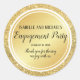 Bonito brilho dourado arma este obrigado redondo de festa de noivado que você cola. Os nomes dos casais envolvidos estão em uma fonte elegante e maiúscula no topo. A festa de noivado é escrita em um script bonito e a data da festa de noivado. Um obrigado que você sente segue. Bonito, elegante e muito elegante. Fácil de personalizar.