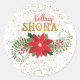 Este adesivo decorativo de Natal apresenta um belo buquê de poinsettia rodeado por ramos de folha, confete de ouro e imagem de texto "Nollaig Shona" (gaélico) em fundo branco. Use o botão personalizar para alterar a cor do plano de fundo ou adicionar texto. Perfeito para cartões de natal e convites.