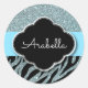 Adesivo Redondo Nome Azul Prata Preto Padrão de Zebra Fashion