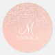 Adesivo redondo clássico com nome e monograma de brilho rosa moderno. Adesivo redondo elegante com nome e monograma de brilho rosa.