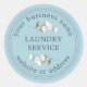 Etiquetas de serviço de lavanderia russas, simples e modernas com seu nome comercial e site ou endereço em tipografia moderna fora do preto em um fundo azul pastel com uma impressão imprimível de algodão a cores aquáticas. Basta adicionar seus detalhes comerciais à etiqueta. Desenvolvido exclusivamente para você pelo Happy Dolphin Studio. Se precisar de ajuda ou produtos correspondentes, entre em contato conosco através da nossa loja.