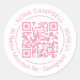 Código QR moderno, cor-de-rosa, redondo, nome comercial e adesivo de endereço com texto personalizado em uma fonte sans serif moderna, um quadro de círculo na moda e espaço para seu código QR. Altere as cores dos elementos de design de acordo com sua vontade e insira seu código QR no nível de design. y.BEE PAPERIE #ZazzleMade #RoundQRCodeSticker #RoundQRCodeBusinessSticker #PinkRoundQRCodeSticker