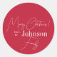 Esta é uma design de Natal moderna. Está em vermelho festivo e branco e tem a mensagem "Feliz Natal! da Família Johnson". Ideal para o seu presente de Natal, acessórios de correspondência, selos de envelopes e selos de festas nesta época festiva. Para personalizar, basta adicionar seu nome na caixa personalizar este texto. Aqui você também pode mudar o resto do texto se quiser. Verifique a ferramenta de edição de design para alterar a cor ou a fonte. Feliz Natal! Se você precisar de ajuda com personalização, produtos correspondentes ou para um contato personalizado comigo via chat zazzle.