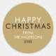 Adesivo Redondo Nome da Família Feliz Natal em Ouro Elegante