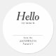 Esses adesivos de reagrupamento familiar chic apresentam um design contemporâneo e elegante com seu nome familiar personalizado na tipografia moderna. Os autocolantes dizem "olá" junto com uma linha para cada membro da família escrever o seu nome. Decoração do partido perfeito para a sua celebração familiar moderna.