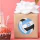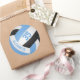 Estes adesivos personalizados de vôlei, com temas redondos, apresentam um vôlei azul-claro, preto e branco sobre o qual você pode personalizar o nome do jogador & número de camisa em uma letra estilo varsity - por katz_d_zynes