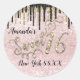 Adesivo Redondo Nome de 16° partido Dourado Confetti Drips Rosa