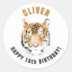 Adesivo Redondo Nome de Aquarela de Cabeça de Tigre Aniversário