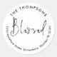 Abençoado Nome de Devolução Endereço Natal preto branco. Tendo em mente as suas mensagens festivas, a manuscrita informal Bendito está no centro a preto e o seu nome e endereço de retorno são curvos acima e abaixo na tipografia negra. As alterações nas cores do texto e do plano de fundo podem ser feitas se você desejar por meio da opção personalizar mais.