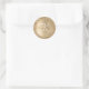 Personalize facilmente este design de adesivo redondo chique e moderno com brilho dourado brilhante em um fundo metálico dourado escovado.