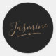 Vinheta redonda do Nome do Script Feminino Dourado Preto Moderno. Personalize facilmente este elegante adesivo redondo moderno com o seu nome personalizado.
