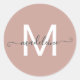 Adesivo Redondo Nome de Script Personalizado Monograma Dusty Rosa