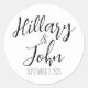 Nome do casal e data de casamento em um adesivo para usar em favores, bolsas de boas-vindas de hotel, literalmente qualquer coisa. Clássico e elegante. Os nomes e a data são facilmente personalizados através da ferramenta modelo design ou você também pode fazer outras alterações editando completamente o design. Qualquer pergunta ou se precisar de ajuda, por favor, entre em contato com o designer diretamente através do Zazzle.