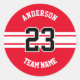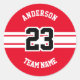 Adesivo Redondo Nome do Esporte, Equipe e Número de Designs Vermel