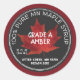 O título na curva superior inclui as iniciais do seu Estado em frente das palavras Maple Syrup em uma fonte branca de quadro negro com borda branca dupla.