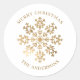 Um adesivo clássico redondo com floco de neve de ouro de Natal com nome. Fácil de mudar o texto.