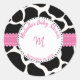 Adesivo Redondo Nome do Impressão de Vaca Preta Monograma Rosa