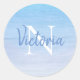 Blue Watercolor Monographic Name Classic Sticker Escrito monograma, nome, tipografia, selo, pessoal profissional. Linhas azuis de pó de pasta de cor d'água. Mulher feminina. Para ela, meninas, mulheres.