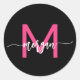 Adesivo Redondo Nome do Monograma da Rapariga Preta-Rosa Quente