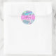 Adesivo Redondo Nome do Monograma Iridescente Holográfico Rosa Gir