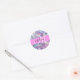 Menino rosa, roxo e aqua, nome de monograma holográfico iridescente e adesivo redondo clássico inicial. Seu nome personalizado e monograma são escritos em um elegante roteiro escrito à mão com um fundo rosa. Um aniversário perfeito ou presente de Natal!