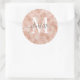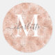 Etiquetas de ouro rosa personalizadas e elegantes, com um padrão de verificação de folha de ouro brilhante rosa com um monograma e um nome personalizado num script moderno. Perfeito para festas femininas. Personalize esses adesivos redondos clássicos com rosa de ouro com seu monograma, nome ou texto.