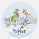 Adesivo Redondo Nome do Raptor Tiranossauro do Natal dos Dinossaur