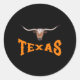 Adesivo Redondo Nome Do Texas Com A Cabeça Do Sr. Longhorn
