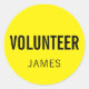 Adesivo do voluntário Clássico do Yellow Volunteer Name Clássico Round Sticker Moderno com fonte em negrito e cores brilhantes, amarelo e preto com nome personalizado. Perfeito para a tripulação, funcionarios, estagiário, grupos e eventos.
